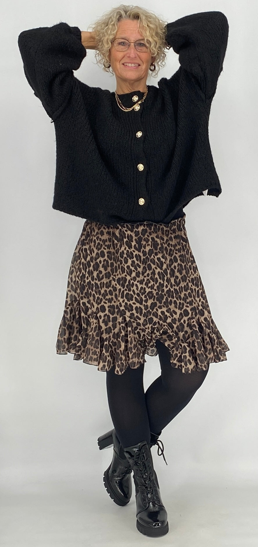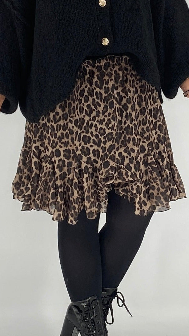 Kurzer Rock im angesagten Leo-Print und elegantem Fall. Egal ob mit einem Langarm Shirt oder einem Pullover, ein echter Hingucker für stylische Auftritte mit WOW -Effekt !