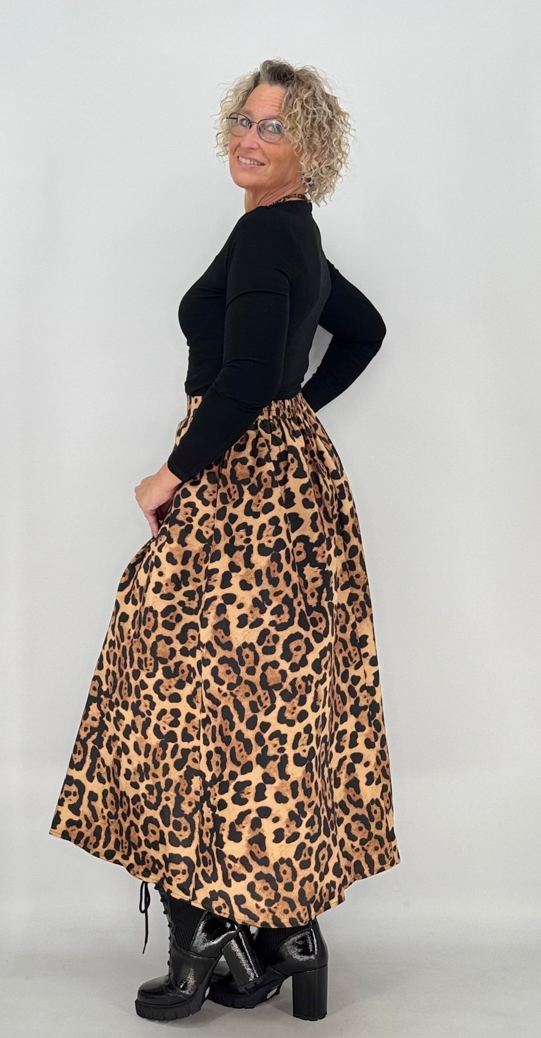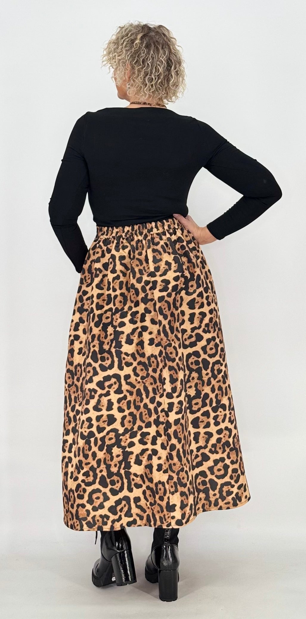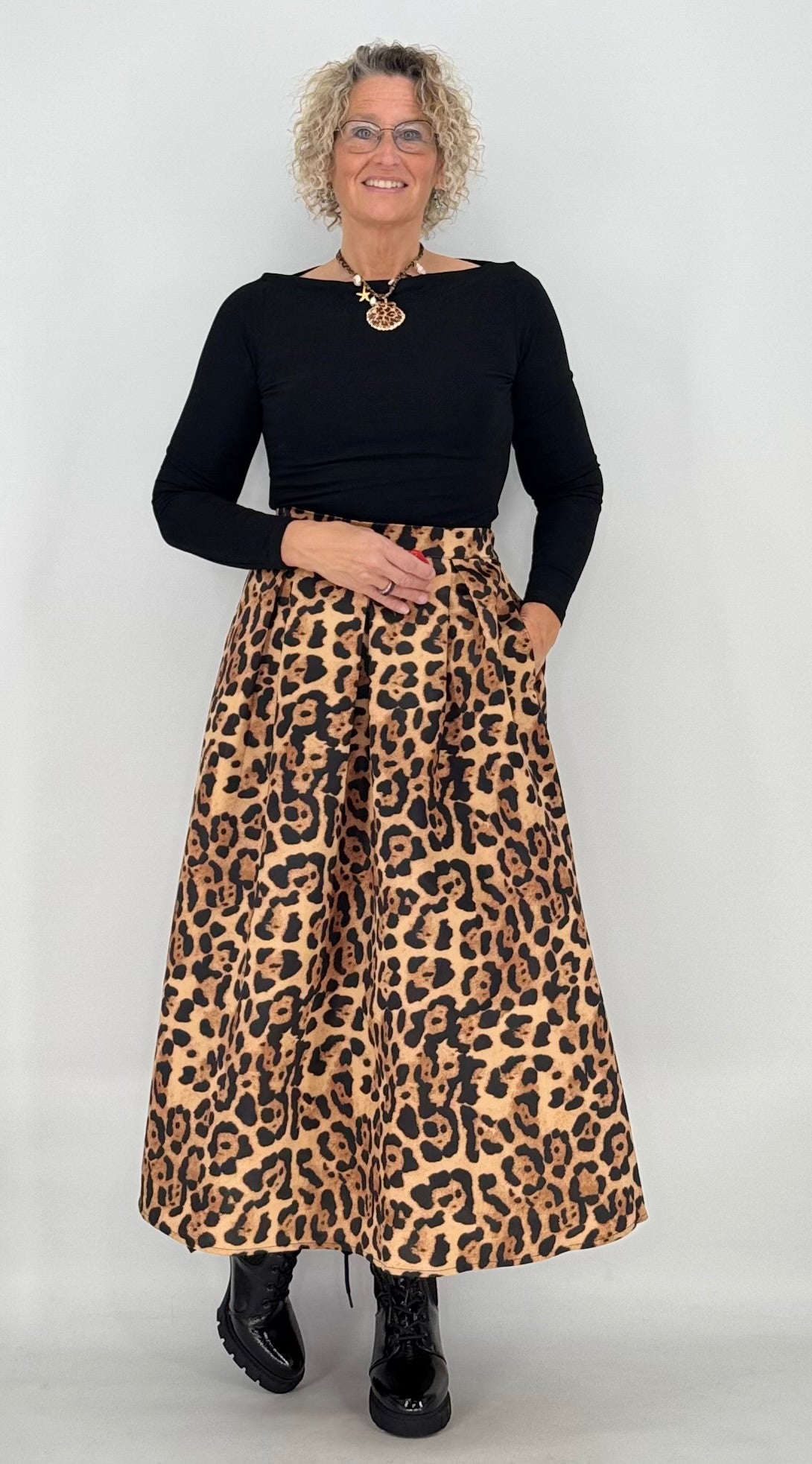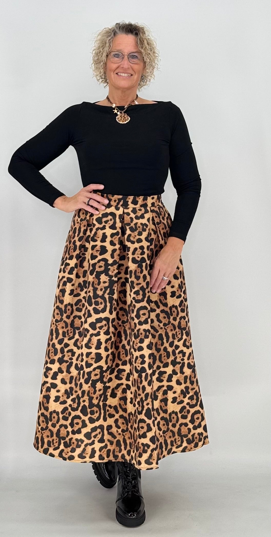 Ausgestellter Midi-Rock im auffälligen Leo-Print. mit Seitentaschen, formstabilem Stoff und elegantem Fall-ein echter Hingucker für stylische Auftritte!