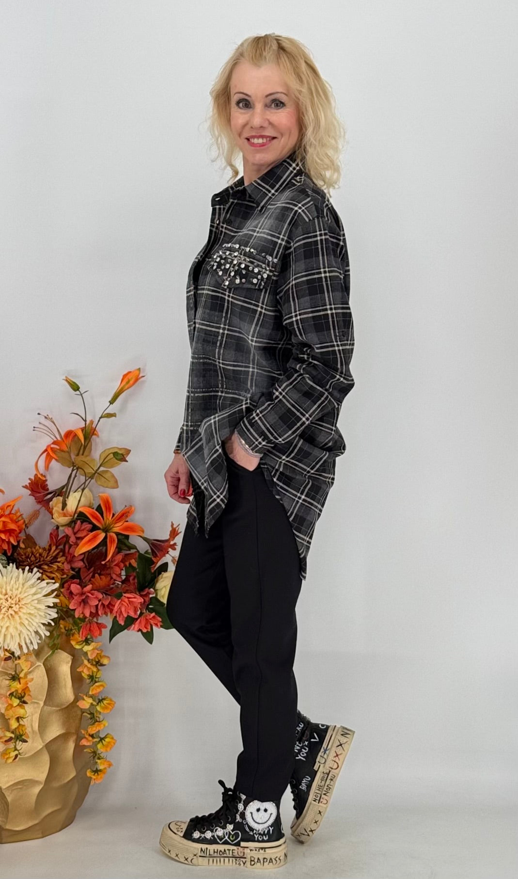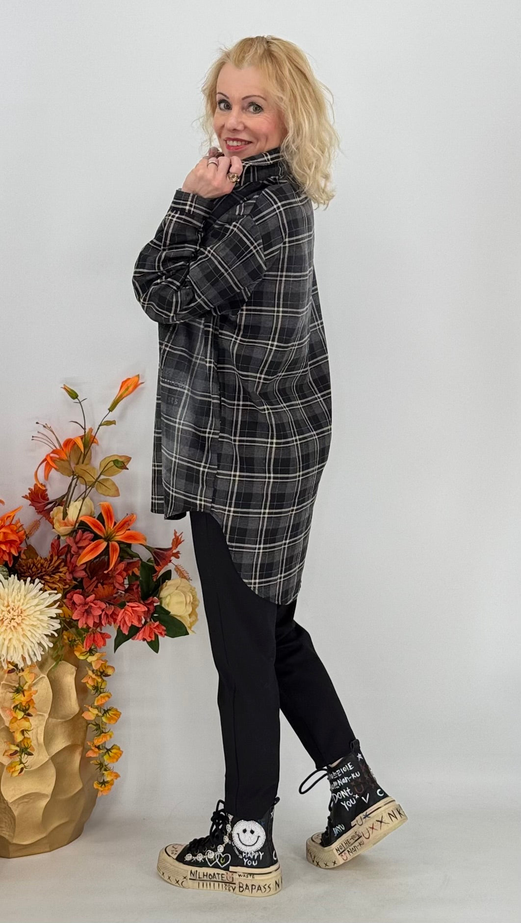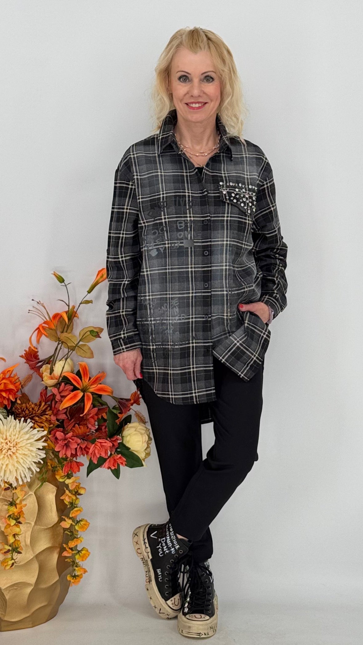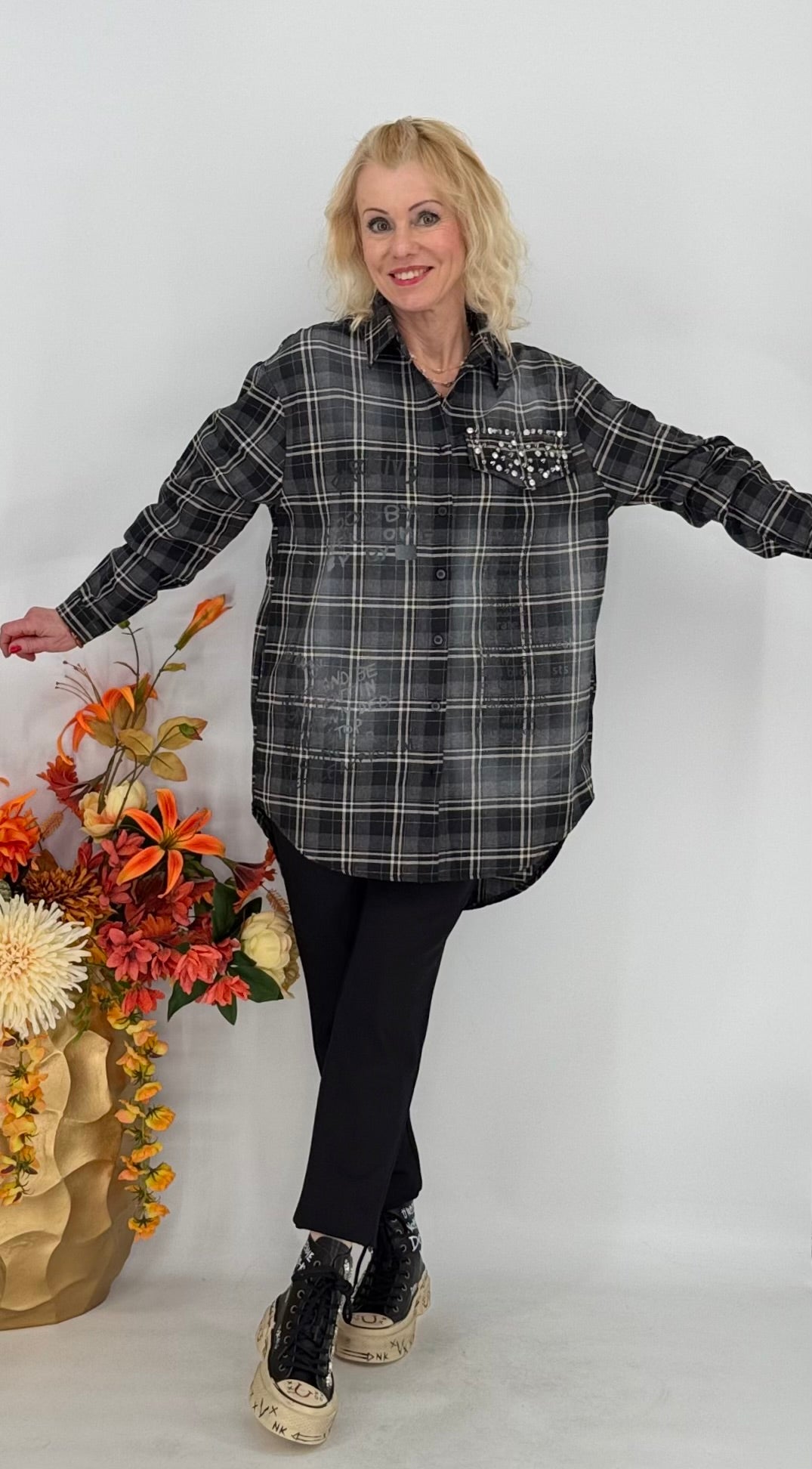 Long- Hemd 100% Baumwolle, grau