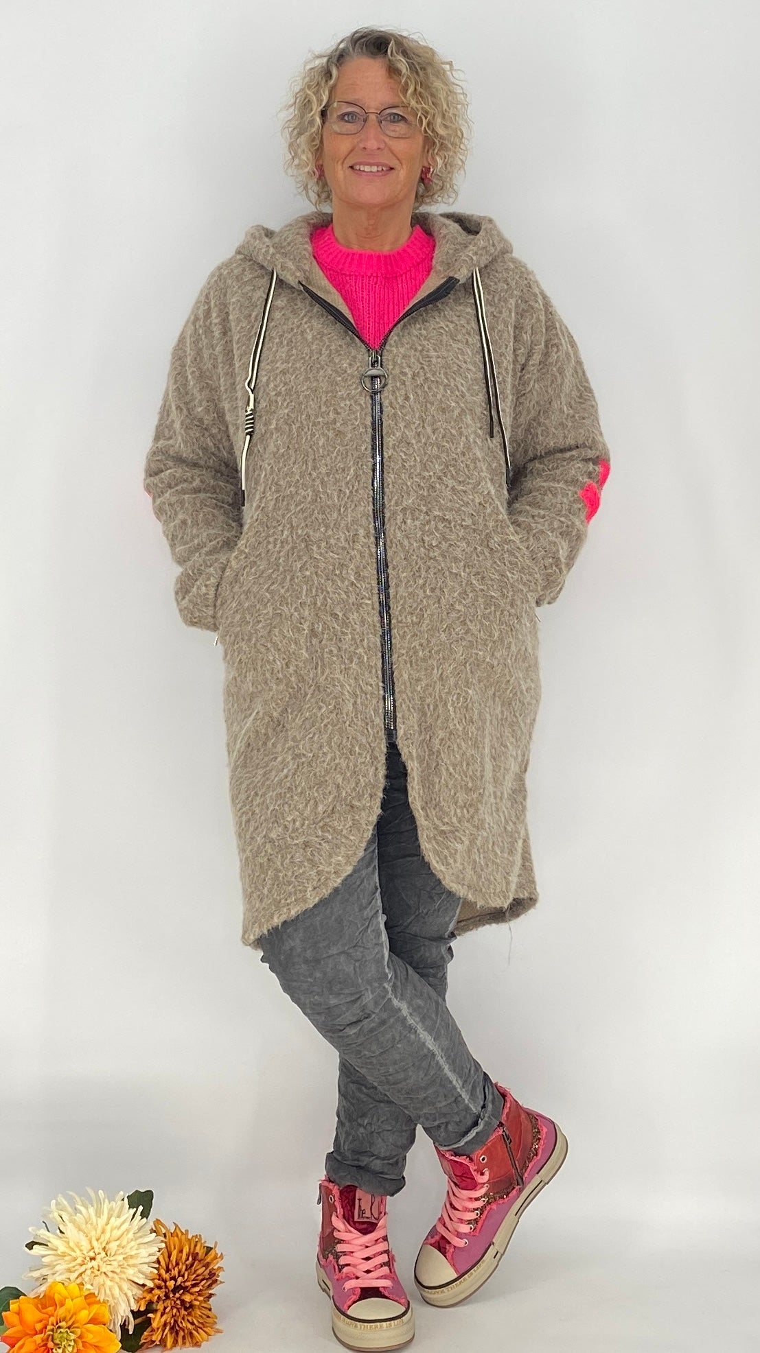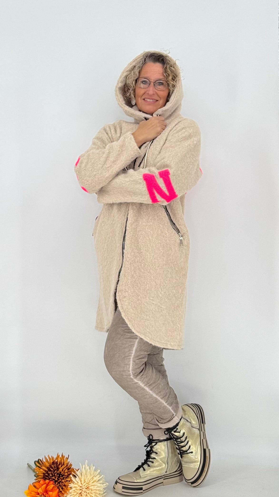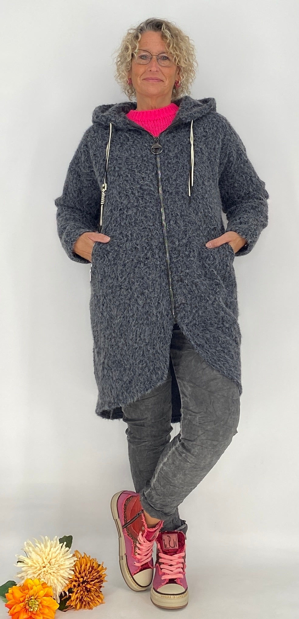 Der lange Mantel "Namaste" sorgt für einen modernen Look und hält angenehm warm. Leicht, bequem- ideal für einen entspannten, aber stilvollen Alltagslook.