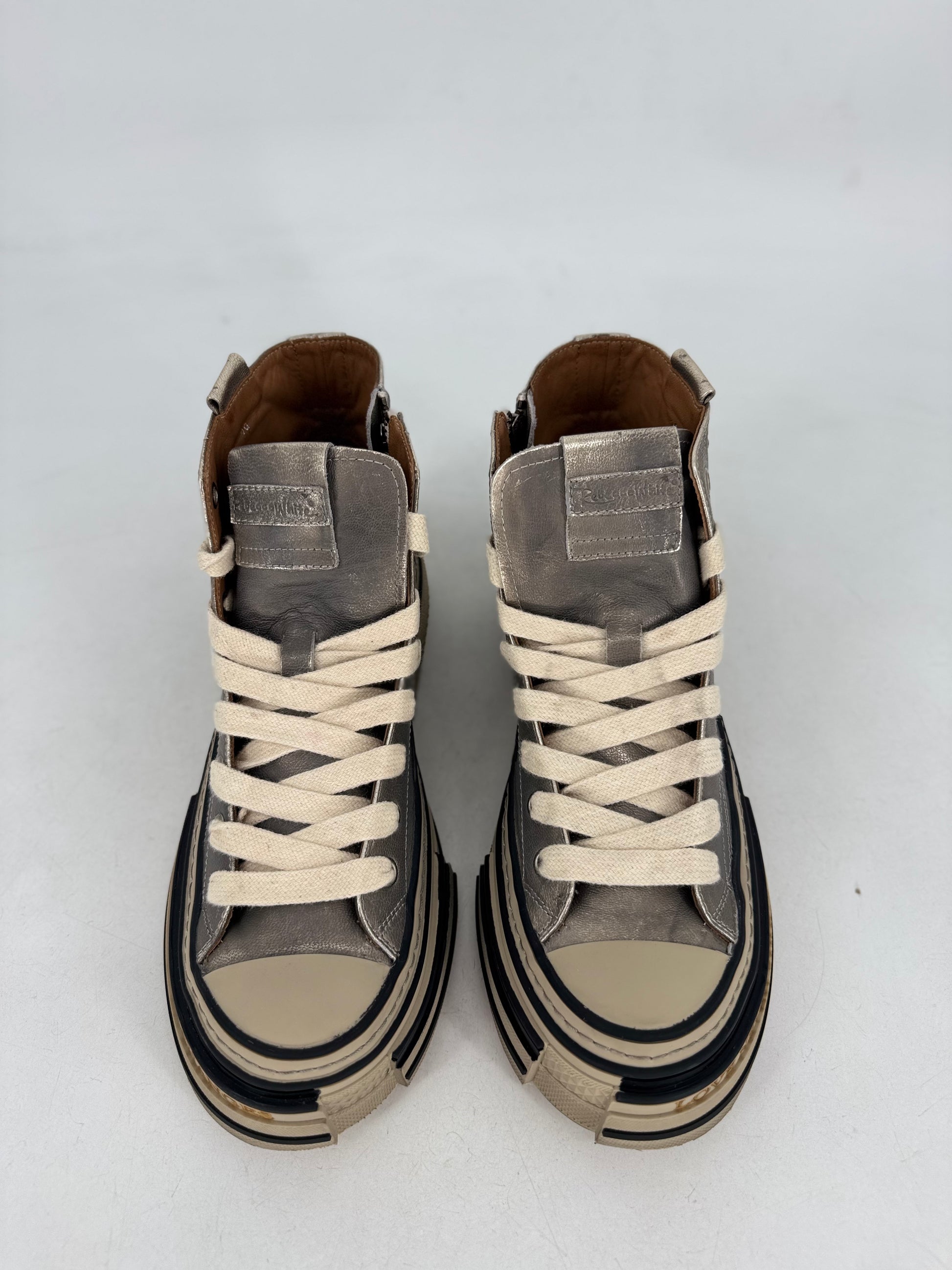 Sneaker in metallic Look. Mit zahlreichen silbernen Details, die dem Schuh einen rockigen und extravaganten Stil verleihen.