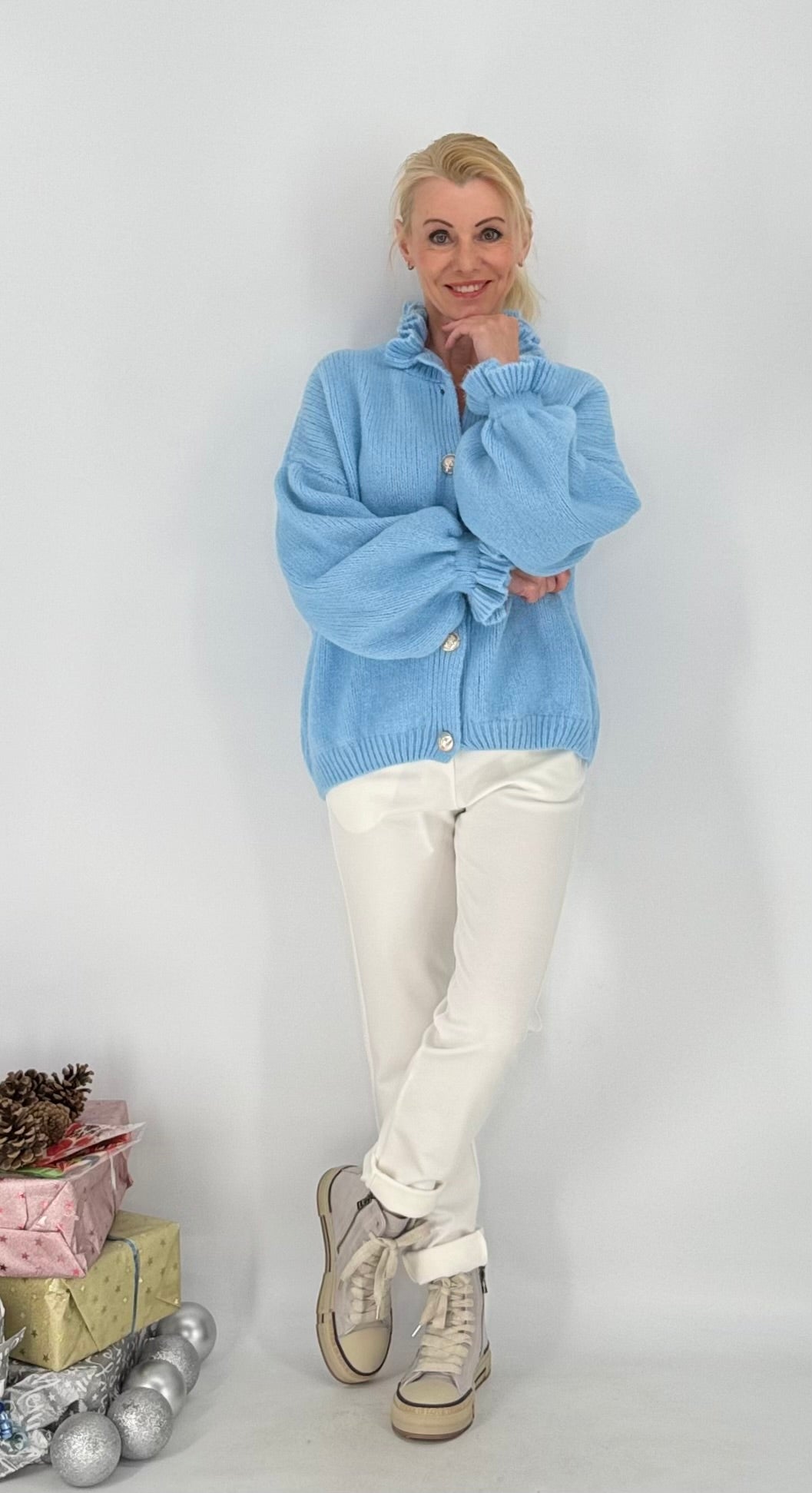 Strickjacke mit goldfarbenen Knöpfen, mit Wolle