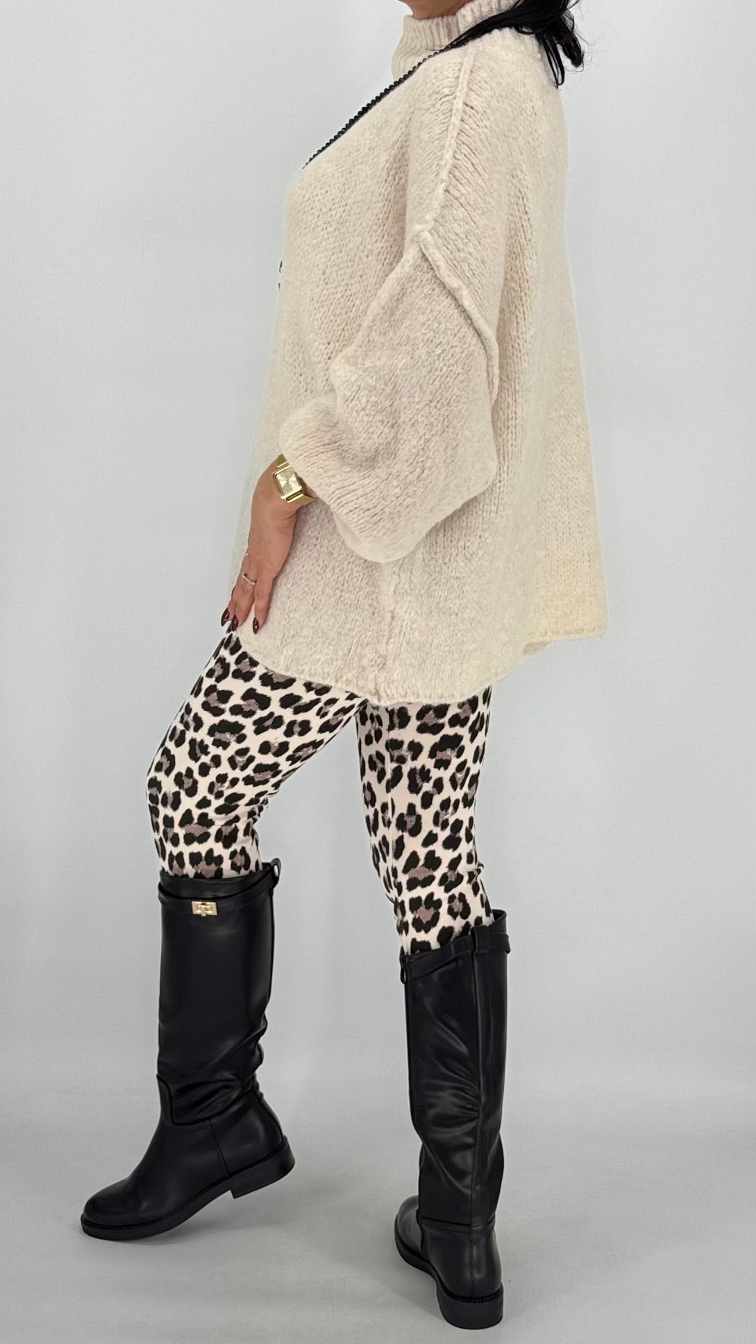 Dieser kuschelige Strickpullover verbindet Komfort und Stil. In einem creme beige, dass sich leicht zu vielen Farben kombinieren lässt. Gefertigt aus weichem, hochwertigem Material bietet er ein angenehmes Tragegefühl und zuverlässige Wärme.